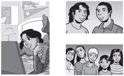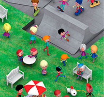 CONNOR: In the skateboard park. I've got a blue skateboard, see? And spiky blue hair.