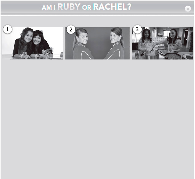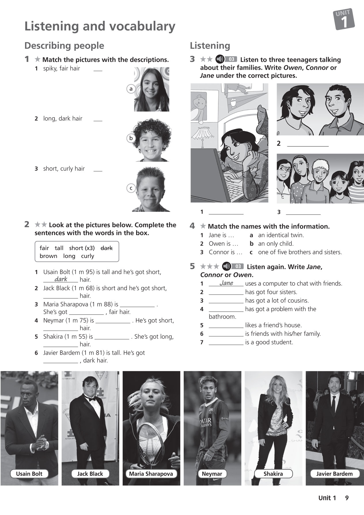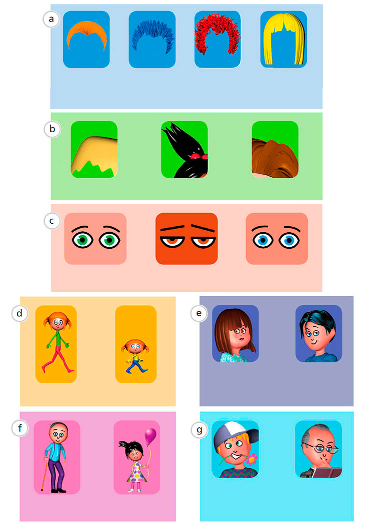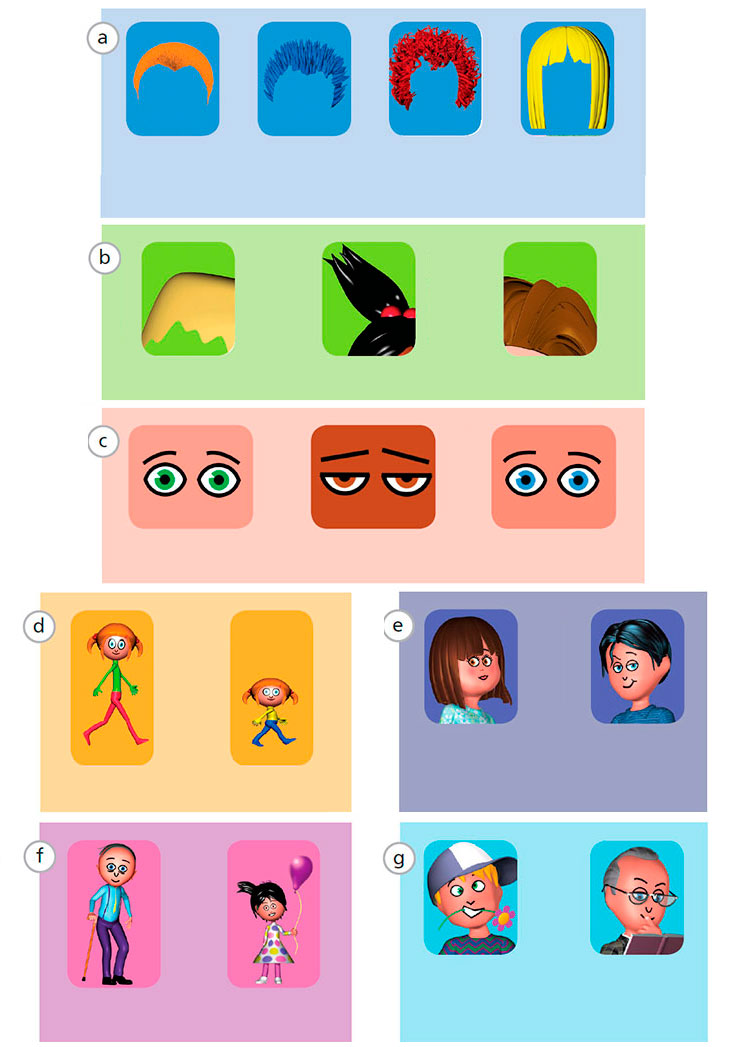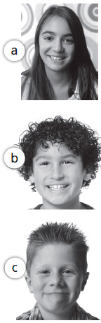SUZI: OK. Let's see … hair …. Green ... it's longer than your hair … eyes …. Red …..