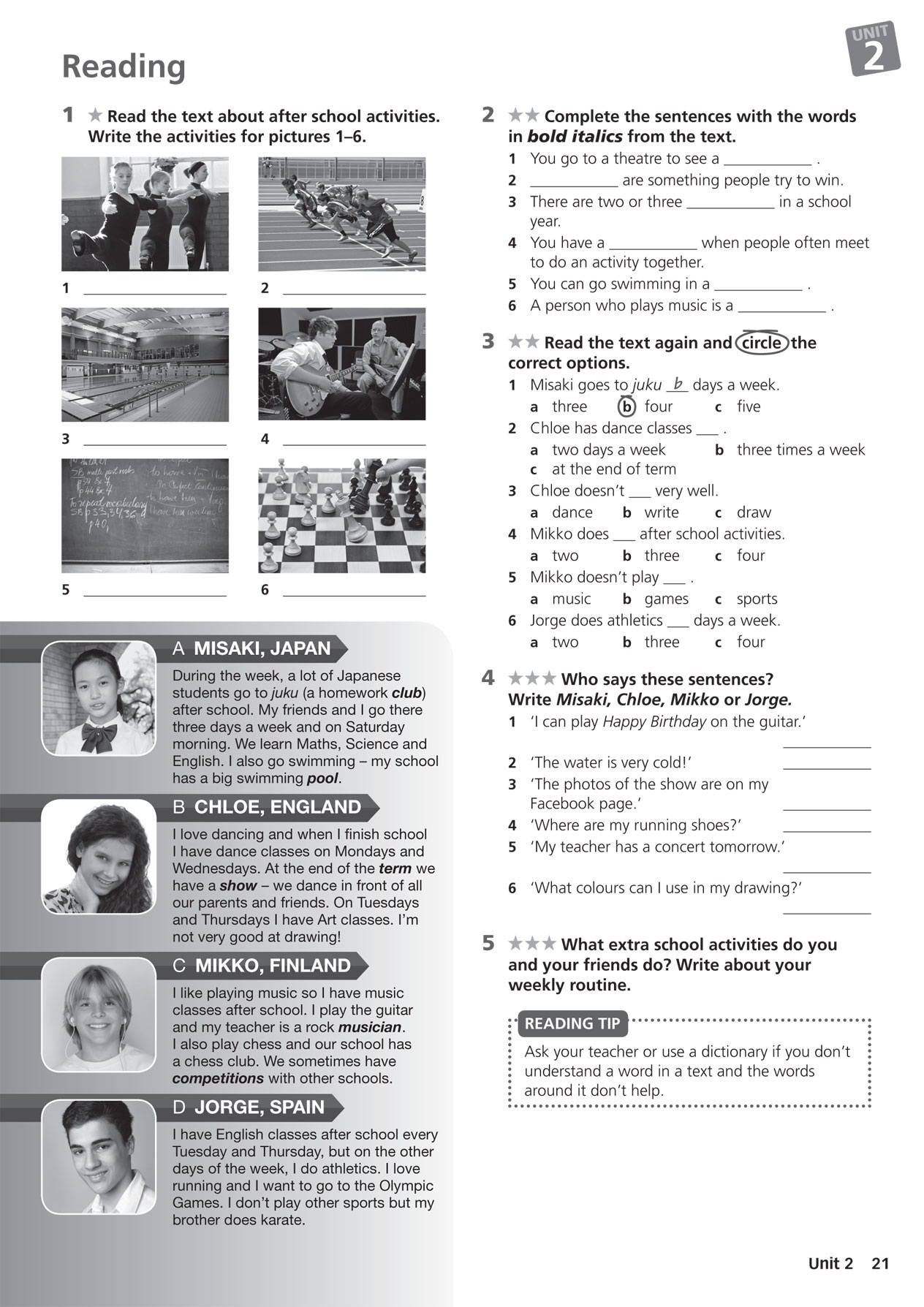 TEACHER: Clara, do you do any sports after school?