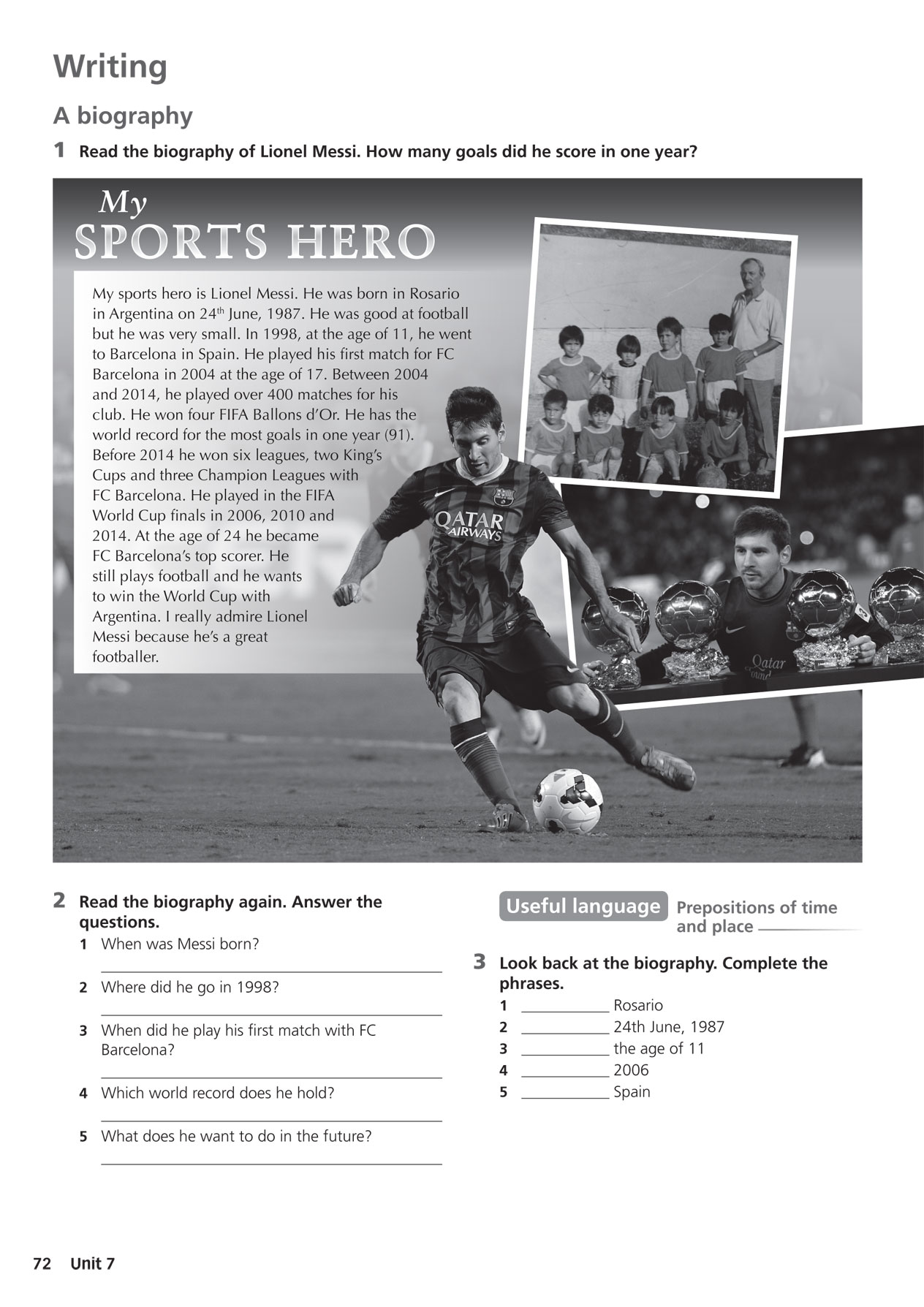 with FC Barcelona. He played in the FIFA World Cup finals in 2006, 2010 and 2014. At the age of 24 he became FC Barcelona's top scorer. He still plays football and he wants to win the World Cup with Argentina.