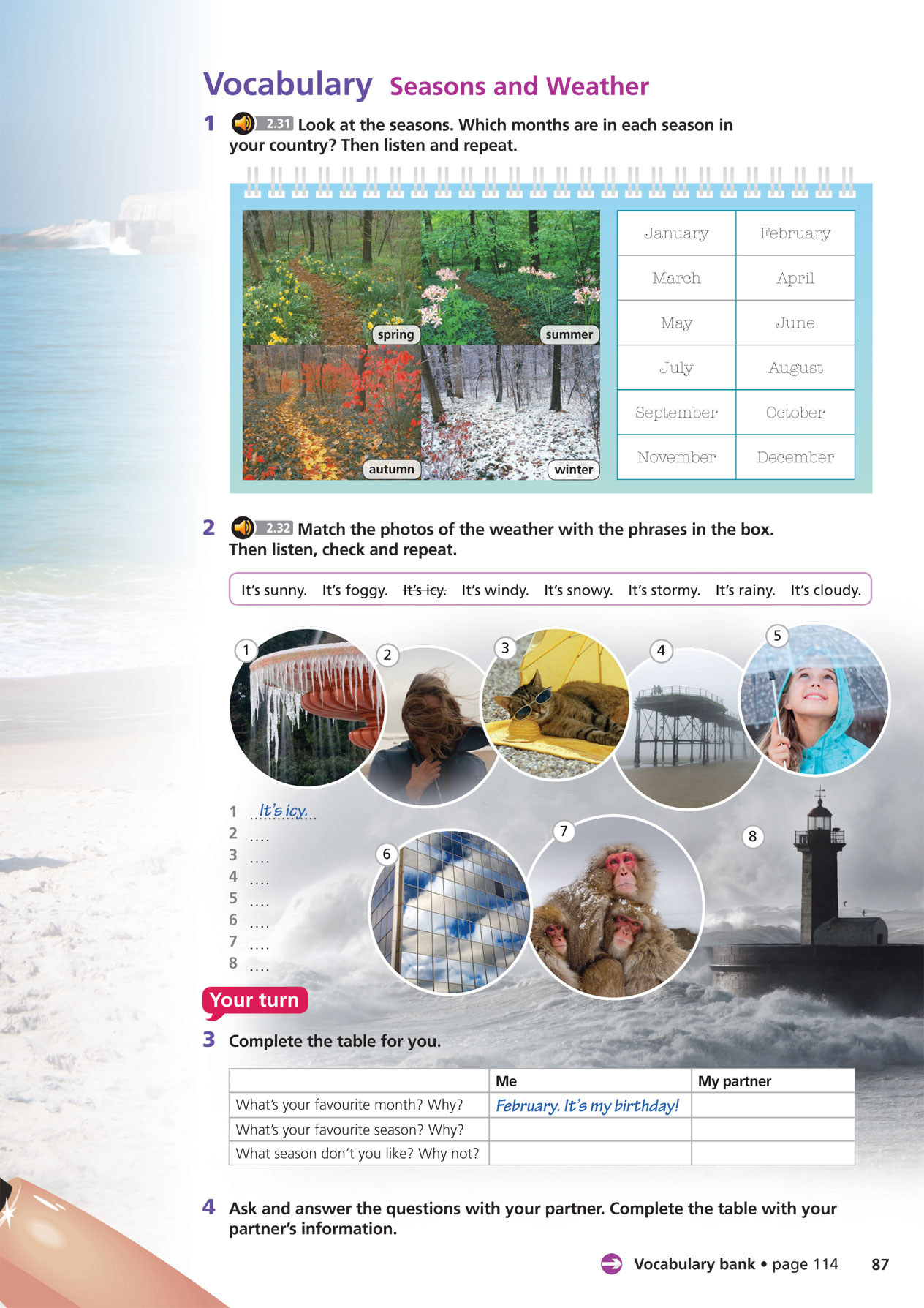 B: I hope so! I'm going to take my mask and flippers. Listen to these tourists.