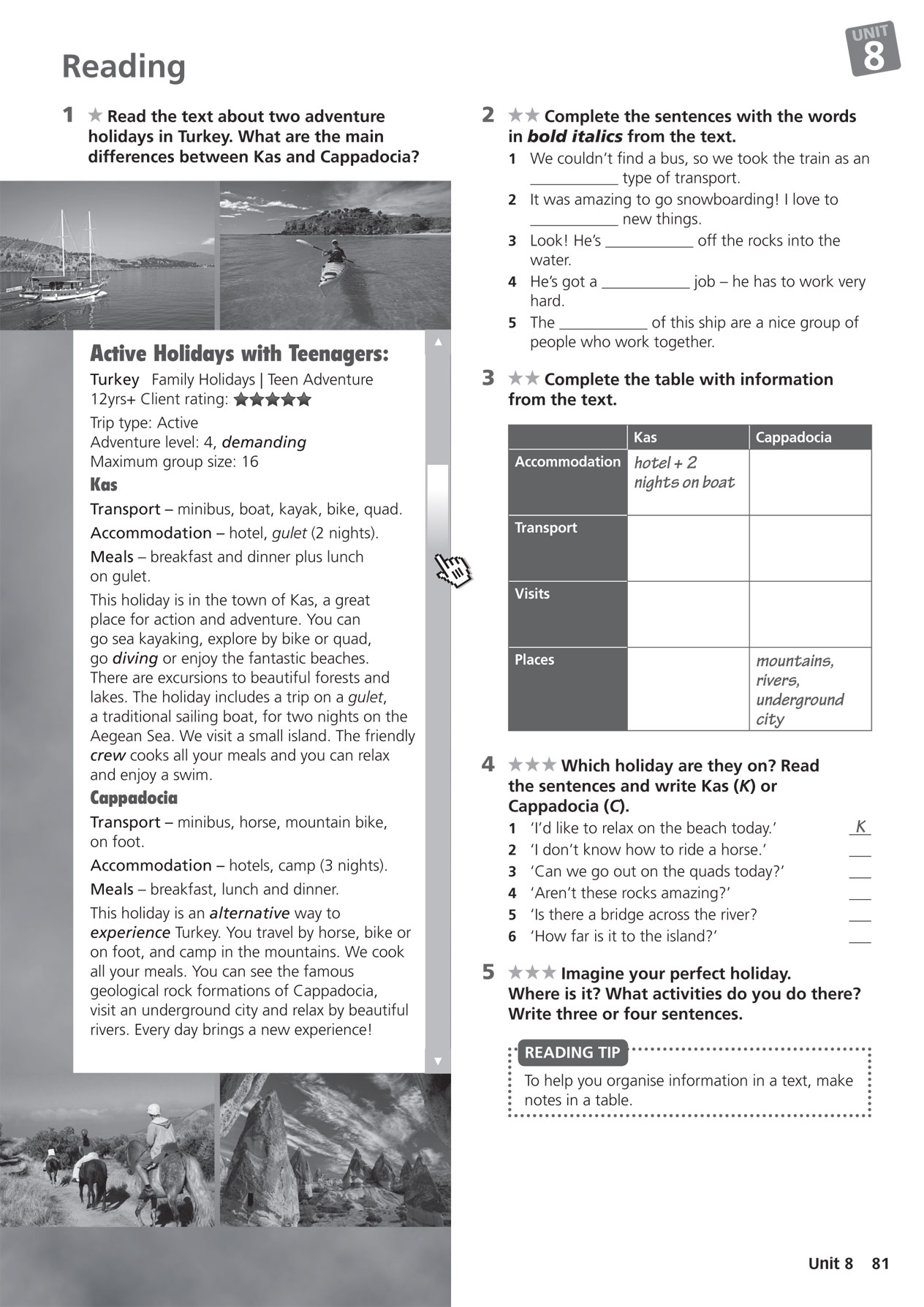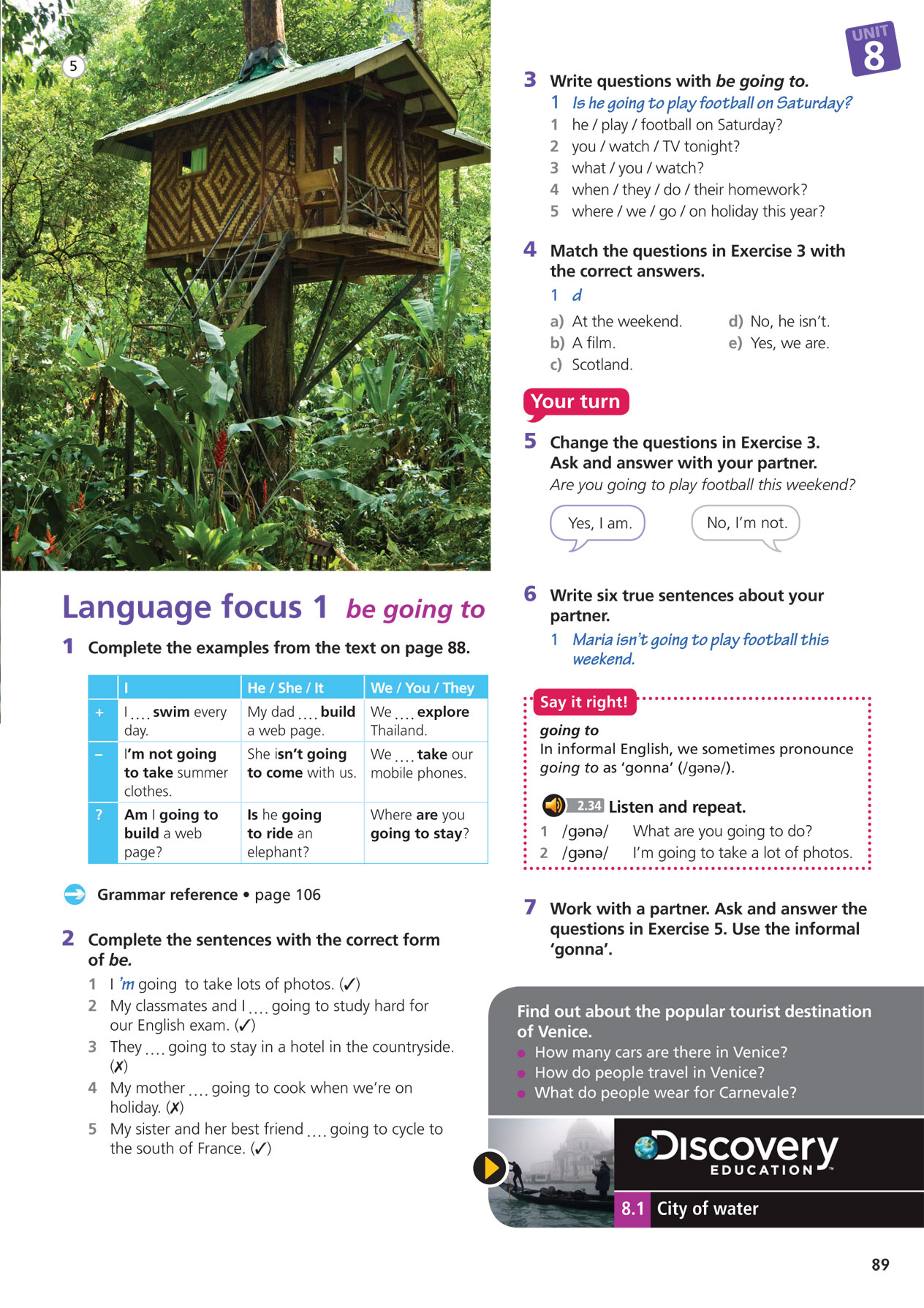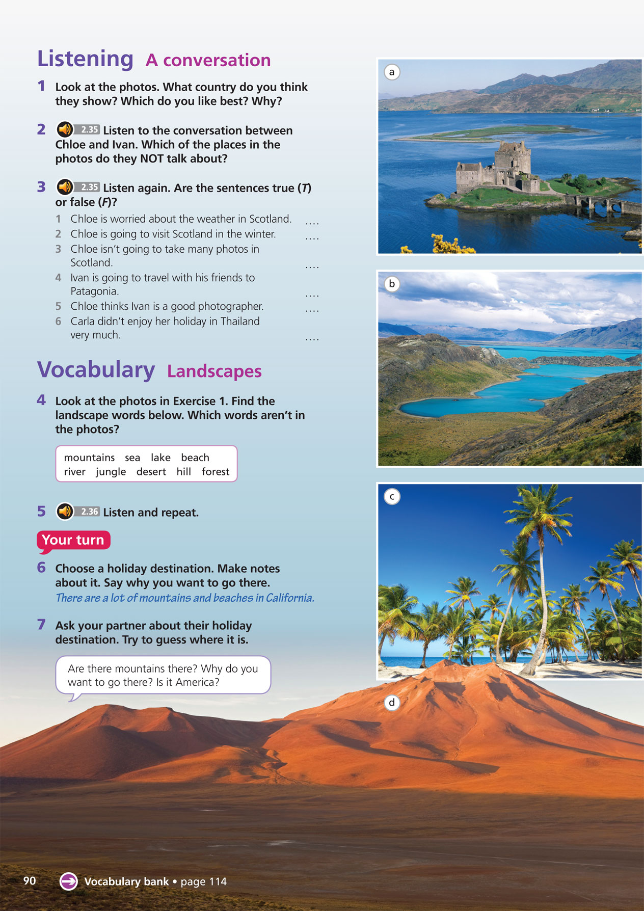 B: We're going to two places with beaches, Sydney and the Great Barrier Reef.