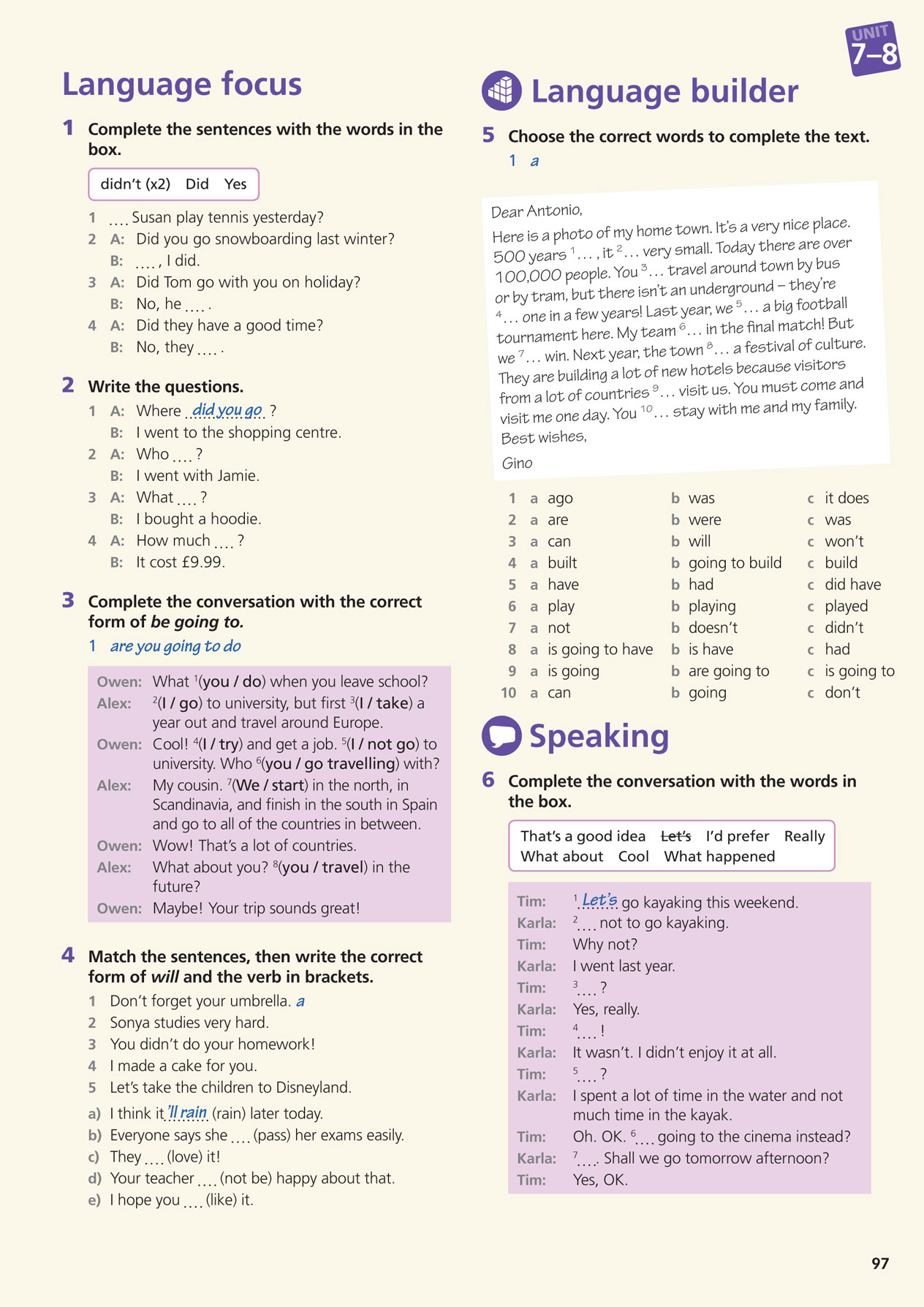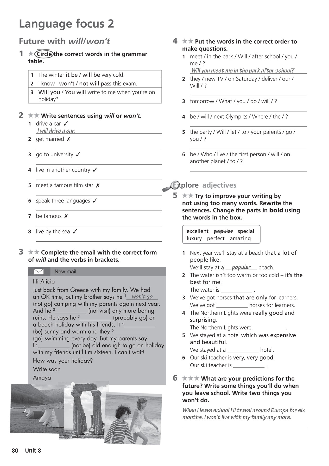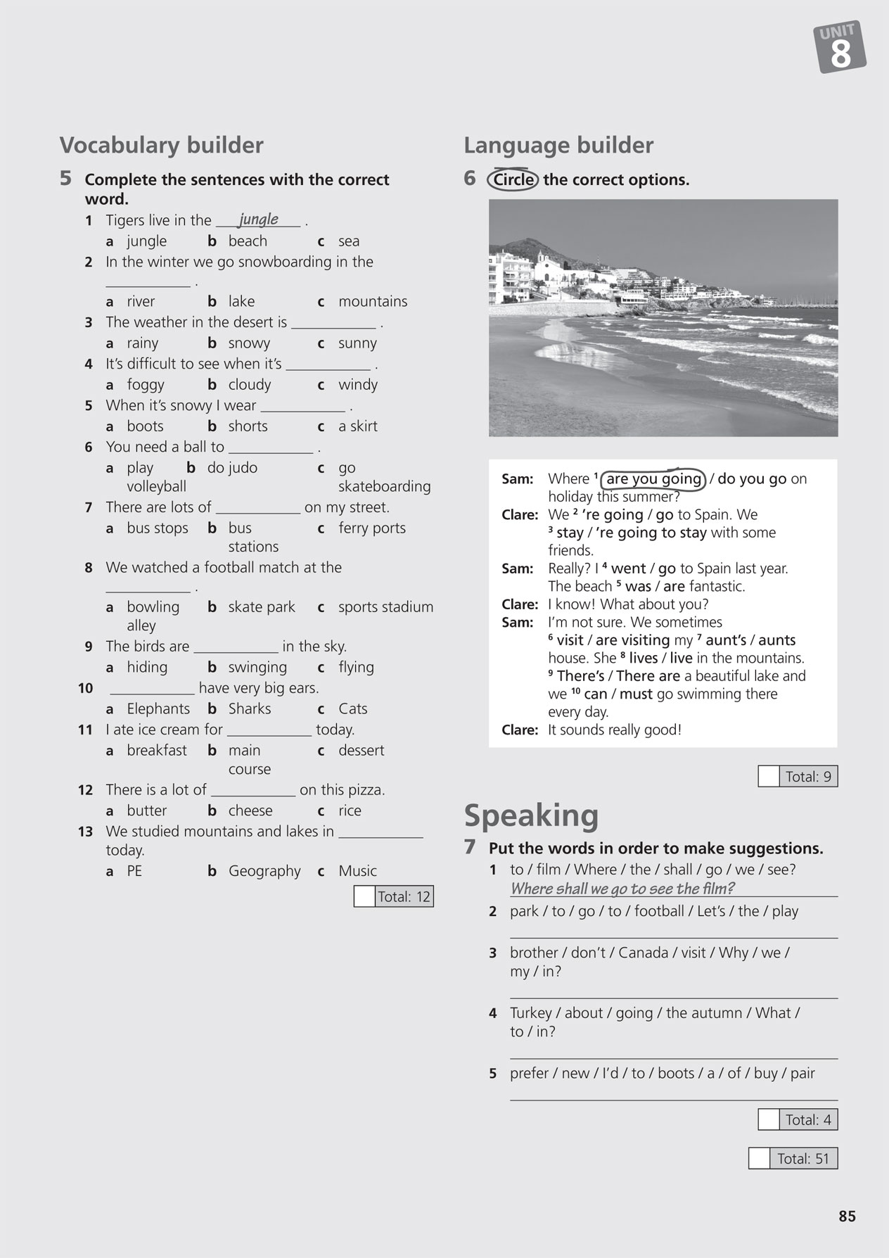 B: We're going to two places with beaches, Sydney and the Great Barrier Reef.