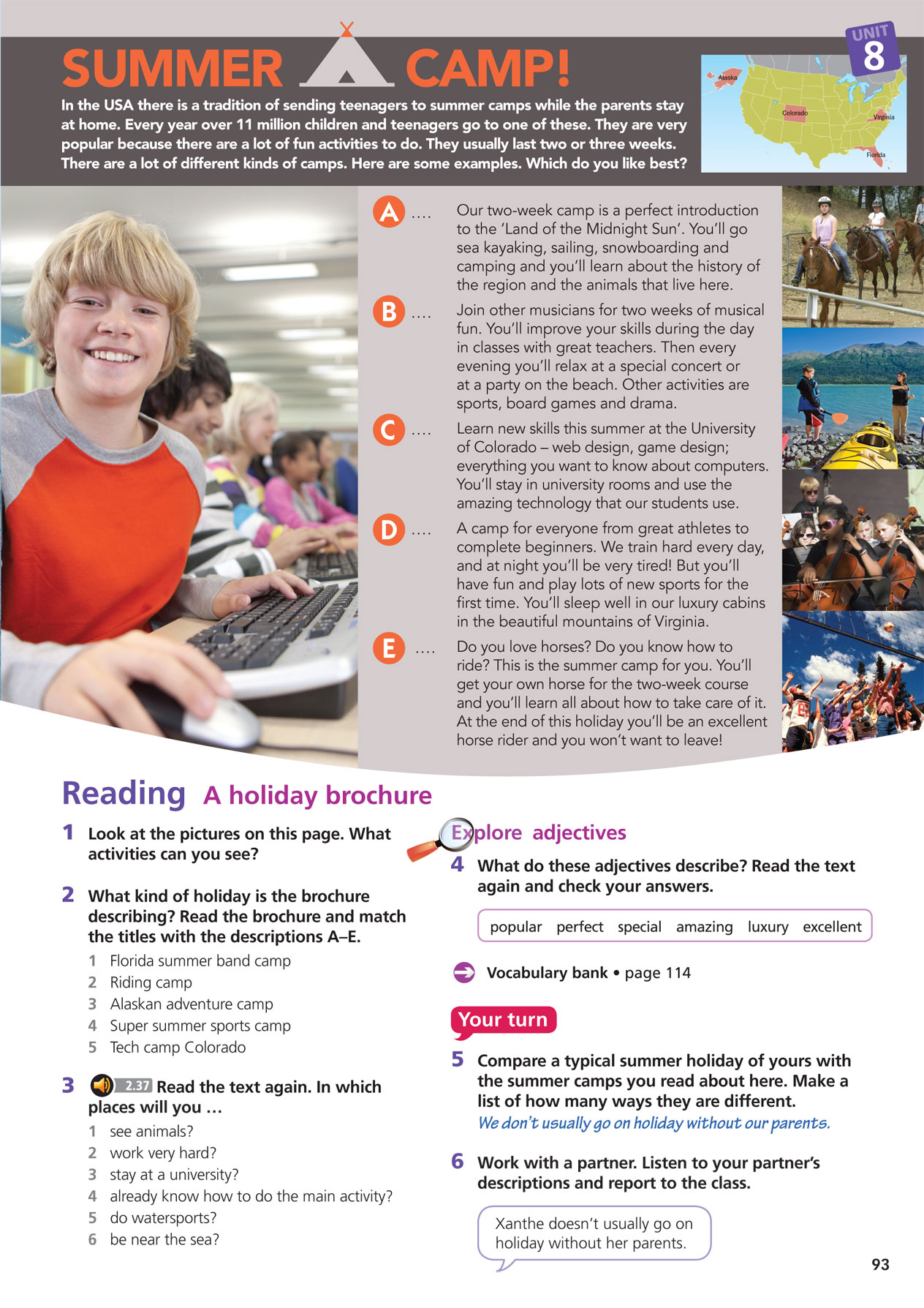 B: Oh, hey, Tina. I'm just looking at some videos to get ideas for our holiday next month.